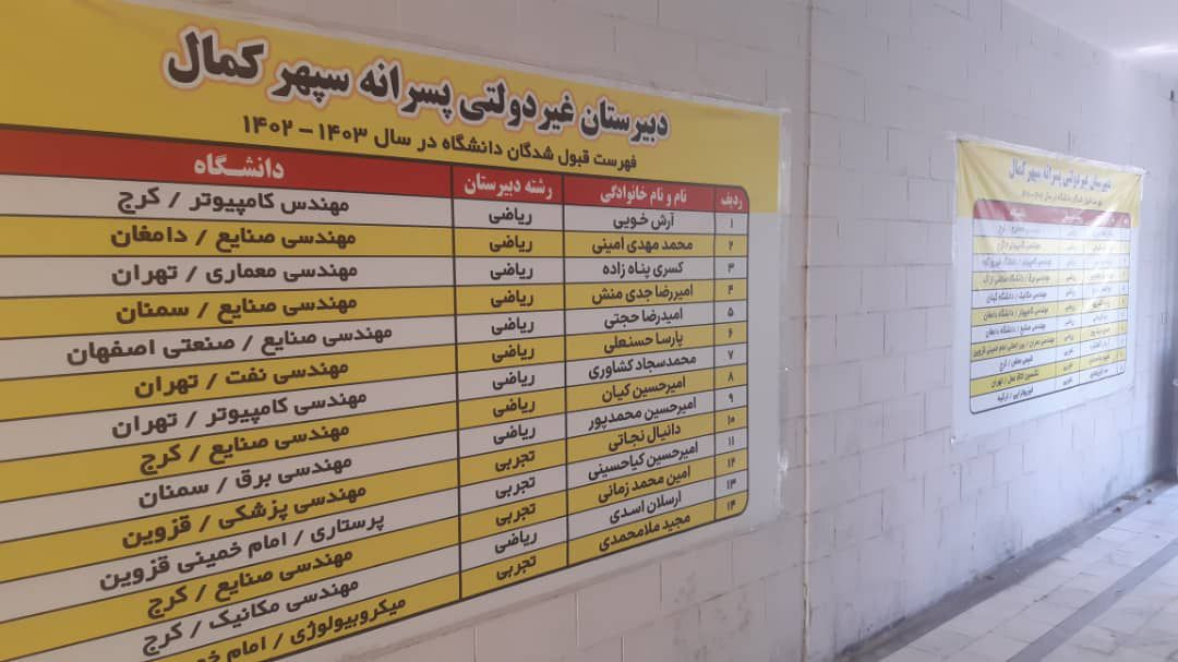 متوسطۀ دوم پسرانه سپهر کمال (پایههای دهم، یازدهم و دوازدهم) ، ( رشتههای: ریاضی فیزیک، علوم تجربی و انسانی)