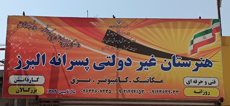 هنرستان پسرانه و بزرگسال البرز( پایههای دهم، یازدهم و دوازدهم) ، ( رشتههای برق، کامپیوتر و مکانیک)